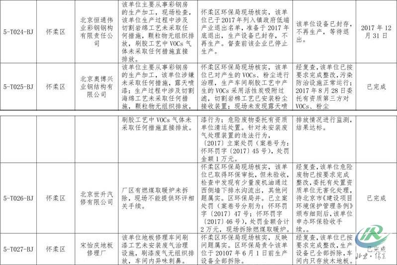 北京市突出问题督办企业涉及怀柔区查处整改情况(第4期)